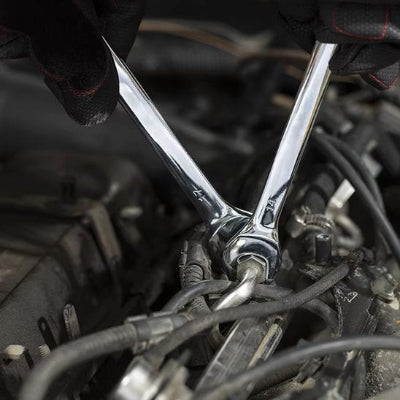 Contrairement à une clé plate classique, la clé plate à cliquet vous permet de travailler sans avoir à repositionner constamment l'outil sur l'écrou. Grâce à son mécanisme à cliquet intégré, vous gagnez un temps précieux et vous économisez vos efforts, surtout dans les espaces étroits ou difficiles d'accès.